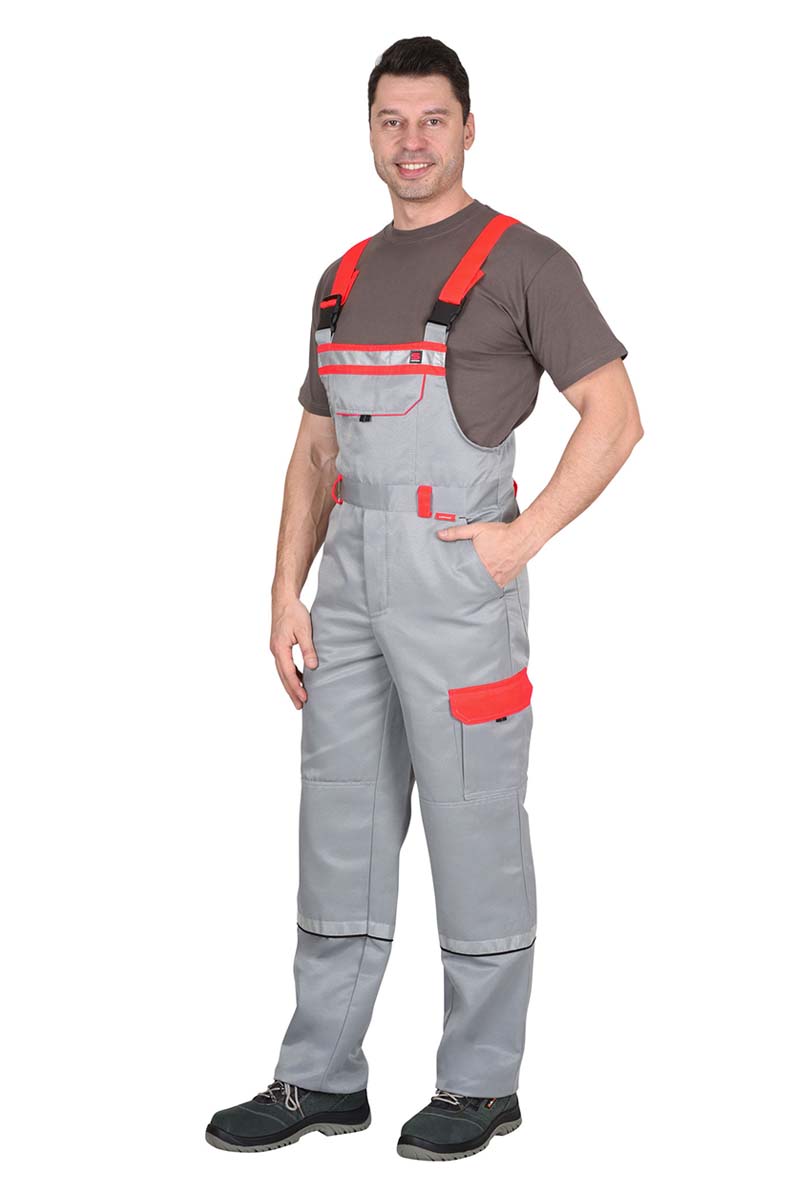 Полукомбинезон с застёжкой на пуговицы, с карманами и с наколенниками.