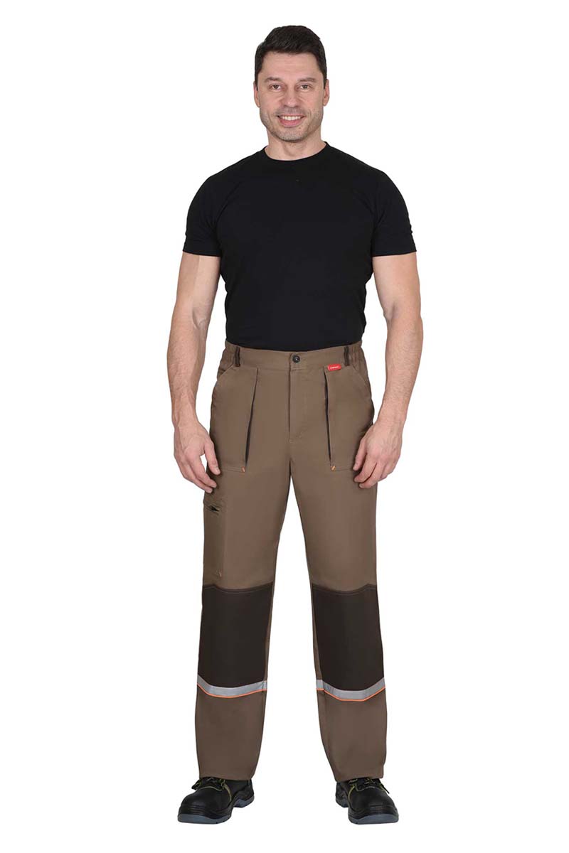 Брюки с накладными карманами, наколенниками.